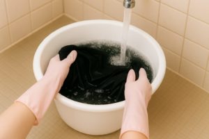 黒染めした衣類は、初回の洗濯時に色落ちや他の衣類への色移りが起こりやすいため、取り扱いには十分な注意が必要です。